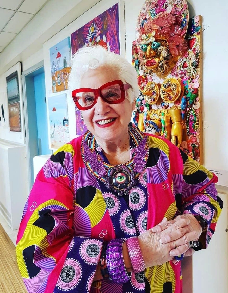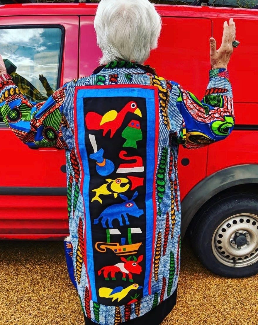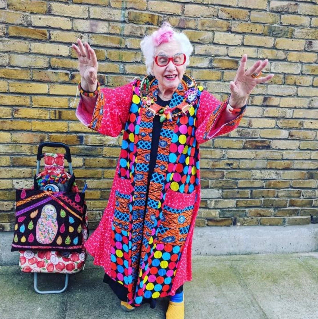 Sue’s style is a reminder that fashion can be a tool for mental health, a source of joy for the public, and a brave declaration of who we are. Let’s enter the “colourlicious” world of a true outsider artist.