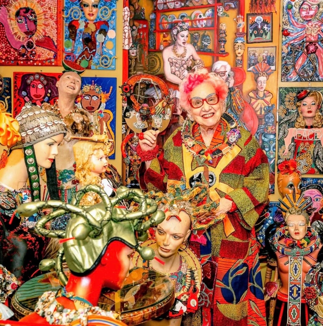 Sue reminds us that the street is our gallery and our bodies are the canvas. Her “neckshrines” aren’t just jewelry; they are protective, powerful icons of a life lived in full radiance. As she says, wearing your soul is an exhilarating way of life.